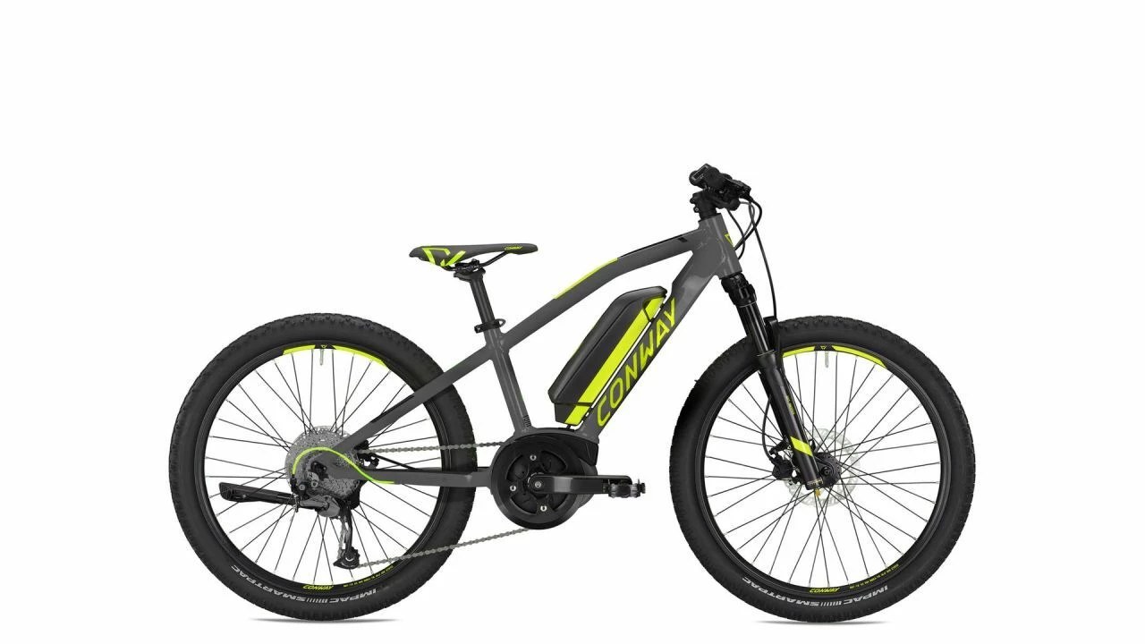 Kinder haben viel Energie und sind oft kaum zu bremsen. Aber gegen E-Bike-Akkus haben sie meistens keine Chance. So fahren sie oft den Eltern auf ihren E-Bikes hinterher. Mit dem eMS 240 hat CONWAY ein E-Bike auf den Markt gebracht, das die Bedürfnisse von Kindern berücksichtigt. Die Geometrie wurde von den bewährten, nicht motorisierten Kinderbikes von CONWAY übernommen.<br><br>Angetrieben wird das Bike vom Bosch-Mittelmotor Active Line Plus. Mit dem 400-Wh-Akku ist genug Kapazität vorhanden, um den Schulweg oder die Fahrt zu Freunden zu meistern. Dabei bringen Scheibenbremsen von Tektro mit 160 mm großen Bremsscheiben Ihr Kind sicher zum Stehen. Natürlich ist die Hebelweite der Bremsgriffe auf kleine Kinderhände angepasst.<br><br>Eine besonders fein ansprechende RST Snyper 24-Luftfedergabel mit 80 mm Federweg, dämpft Stöße souverän ab und schont somit die Kinderhandgelenke. Für längere Distanzen auf geraden und ebenen Strecken kann die Federung der Gabel natürlich auch blockiert werden. Für die richtige Übersetzung sorgt ein Shimano-Schaltwerk mit 9 Gängen. Die Schaltung lässt sich einfach mit einem Schalthebel bedienen. Somit lernen auch die Kleinen das intuitive Schalten schnell.