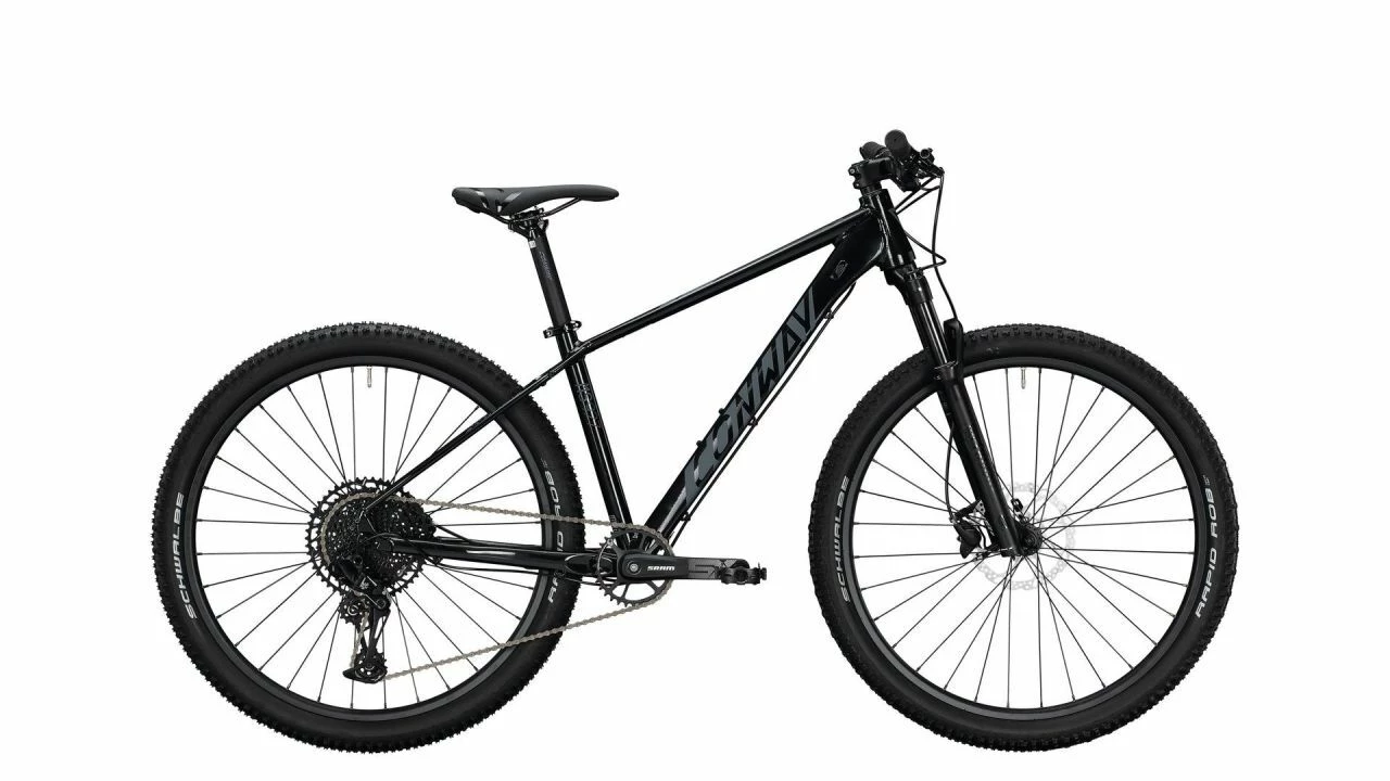 Wer mit dem CONWAY MS 927 unterwegs ist, stellt schnell fest: Das Hardtail ist ein echter Allrounder. Ob querfeldein, auf Schotterpisten oder verspielten Trails, das MS 927 fühlt sich überall zuhause. <br><br>Dafür ist neben der sportlich-ausgewogenen Fahrweise vor allem die 30 Silver TK Solo Air von Rockshox mit ihren 100 mm Federweg verantwortlich. Sie macht das Bike für die Cross Country- und Marathonkurse so richtig geländegängig. <br><br>Mit den agilen 27,5'' Laufrädern und Schwalbe Rapid Rob Reifen steuert es sich wendig über Buckelpisten aller Art. In 57 mm Breite ist auch die Aufstandsfläche der profilierten Reifen hoch, was den hohen Grip auf Schotter und Waldboden erklärt. <br><br>Lange Anstiege und kurze steile Rampen kurbelt man souverän mit der 1×12-fach Sram NX Eagle Schaltung hoch die breite Abstufung der Kassette mit 11-51 Zähnen machts ebenso möglich wie den Zielsprint auf der Feierabendrunde. Der Antrieb spart sich den Umwerfer und einen Schalthebel, was Gewicht spart und dann im wahrsten Sinne des Wortes einfachen Schaltspaß bereitet. <br><br>In der Abfahrt hingegen punkten am MS 927 zunächst die Federgabel und die griffigen Reifen, mit denen man das Hardtail richtig laufen lassen kann. Dabei halten die Shimano BR-MT200 hydraulischen Scheibenbremsen das Bike souverän im Zaum. Mit vorne 180 mm und hinten 160 mm Scheibendurchmesser bieten sie anständig Reserven fürs feinfühlige Einteilen der Bremskräfte auf allen Cross Country- und Marathonkursen und allen Touren in Wald und Feld.