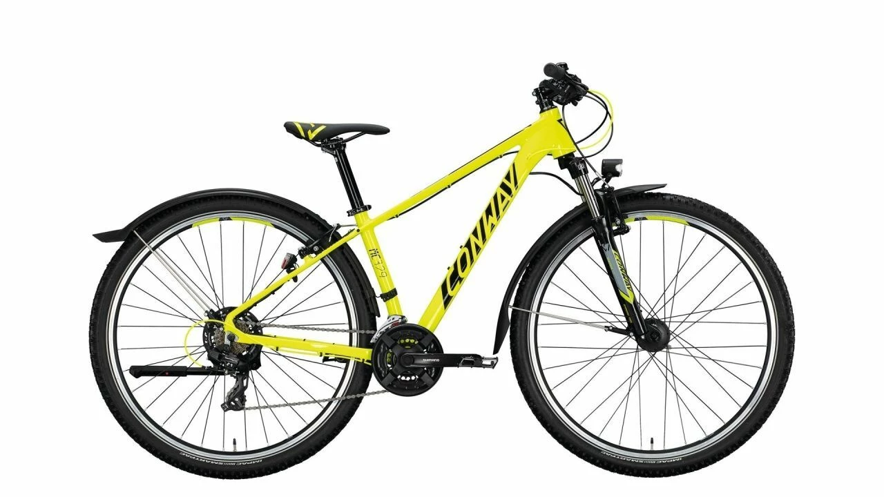 Das Einsteiger-Bike MC 329 von CONWAY ist für Touren im leichten Gelände und auch den Stadtverkehr dank straßentauglicher Ausstattung bestens gerüstet. <br><br>Die Reifen unterstreichen den Anspruch des Bikes, auf der Straße und im Gelände gleichermaßen zu überzeugen. Das griffige Profil der Impac-Reifen bietet auf losem Untergrund sicheren Halt. Aber auch auf der Straße rollen die 29'' großen Reifen angenehm. In der Größe überrollen sie Hindernisse erwiesenermaßen am besten.<br><br>Beim In-Schwung-bringen und den Berg hoch hilft ein 3×7-fach Antrieb von Shimano, und um Tempo herauszunehmen verrichten die V-Bremsen von Tektro überaus solide ihre Aufgabe. <br><br>Alltagstauglich im Straßenverkehr wird das MC 327 mit dem LED-Licht, das von einem Nabendynamo gespeist wird und den Schutzblechen. Wenn es einmal richtig ins Gelände geht, lassen sie sich auch mit wenigen Handgriffen abnehmen.