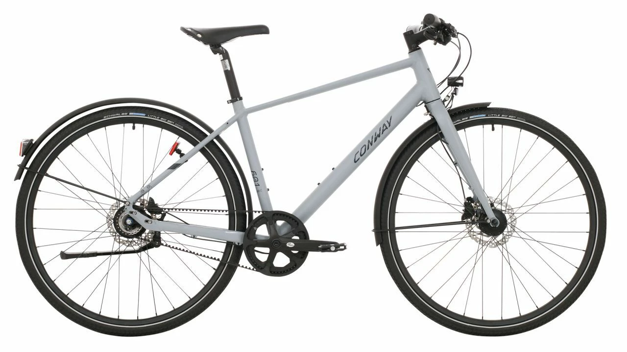 CONWAY hat mit dem URB C 601 ein elegantes Alltagsrad mit hochwertiger Ausstattung im Angebot. Das URB C 601 ist für den täglichen Weg zur Arbeit, also für das Commuting, gemacht. Die Komponenten sind so gewählt, dass das Rad auch bei wenig Wartung zuverlässig funktioniert. <br><br>Für den wartungsarmen Gebrauch sind Nabenschaltungen wie gemacht. Die Schaltmechanik ist in der Nabe versteckt und somit vor Wettereinflüssen geschützt. Deshalb hat sich CONWAY für eine Nexus-Schaltnabe von Shimano mit 8 Gängen entschieden. Ein weiterer Vorteil beim alltäglichen Weg zur Arbeit ist der Riemenantrieb von Gates. Der Riemen ersetzt die Kette, rostet nicht und braucht keine Schmierung. So kann auch kein Öl an der Hose hängen bleiben.<br><br>Für den Fall das, einen der Regen mal überrascht, ist das URB C 601 mit Schutzblechen gegen das Spritzwasser der Straße geschützt. Um bei schlechter Sicht gut gesehen zu werden, ist das Urban Bike mit einem leistungsstarken 35-Lux-Scheinwerfer ausgestattet. Für sicheren Halt auf nasser Straße sorgen Markenreifen von Schwalbe. Zusätzlich dämpfen die Reifen die Vibrationen der Straße und sind somit maßgeblich am Komfort des Bikes beteiligt.<br><br>Das URB C 601 von CONWAY ist ein sportlicher, komfortabler und zuverlässiger Commuter für den alltäglichen Gebrauch. Mit einer hochwertigen und wartungsarmen Ausstattung bietet der Urban Commuter ein stimmiges Gesamtpaket.
