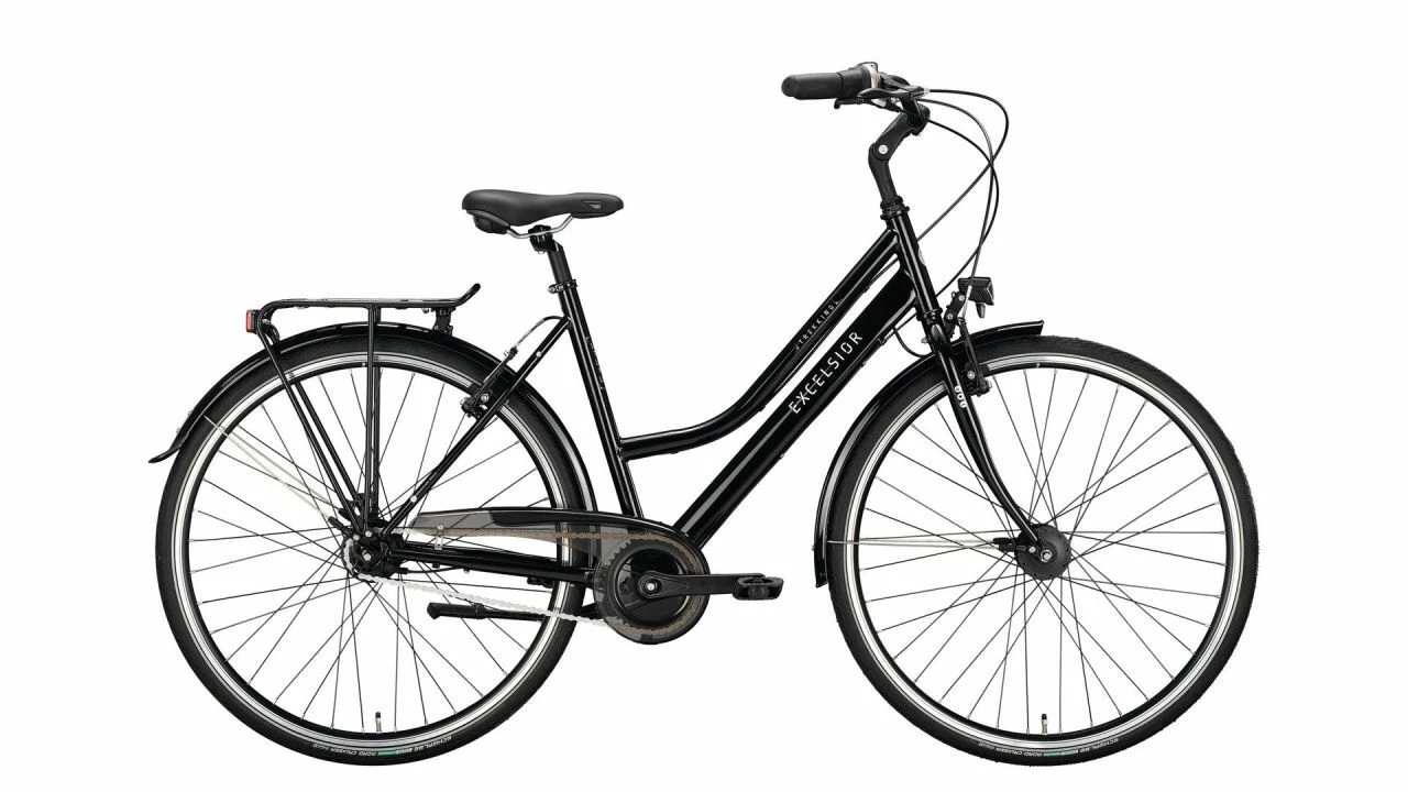 Mit dem Trekking stellt EXCELSIOR ein typisches, vollausgestattetes Alltagsrad bereit. Dieses Fahrrad hat ein klassisches, zeitloses Design und ist dank seines Stahlrahmens und seiner Stahlgabel sehr robust.<br><br>Dieses Cityrad verkörpert Zuverlässigkeit in großem Maß. Angenehm ist, dass es nur wenig Wartung braucht und sehr langlebig ist. Dafür steht zum Beispiel die 7-Gang-Hinterradnabe von Shimano. Mit dieser hat man es sehr einfach. Pflege und Wartung sind kaum nötig.<br><br>Das Fahrrad mit dem HiTen-Rahmen erfüllt mit seiner schicken, kompletten schwarzen Verkleidung hohe Ansprüche an die Optik. Schlicht und einfach stehen hier Nostalgie und Bewährtes im Vordergrund.<br><br>Im Allgemeinen bietet das Trekking viel Leistung für vergleichsweise wenig Geld. Dabei eignet sich der Herren-Rahmen bis Rahmenhöhe 61, sowie der Trapez-Rahmen bis Rahmenhöhe 55 besonders auch für größere Fahrer.<br><br>Verzögert wird auf diesem Fahrrad mit einer V-Brake, während der Road Cruiser von Schwalbe beim Bremsmanöver viel Grip bietet. Mit seiner AXA-Beleuchtung samt 15-Lux-Scheinwerfer und einem Rücklicht mit Standlicht-Funktion lassen sich auf diesem Citybike auch Nachtfahrten auf dem Sattel meistern.<br><br>Als vielseitiges Fahrrad für den Alltag macht das Trekking von EXCELSIOR allemal eine gute Figur. Es ist ein hervorragender Begleiter für den Alltag.