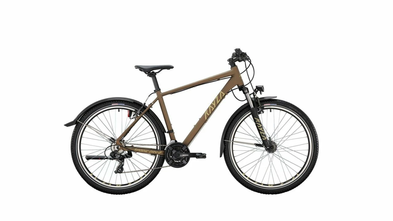 Dry bedeutet trocken – und das haben die Entwickler von KAYZA genauso für ihre Hardtails interpretiert. Schutzbleche sind hier das Mittel zum Zweck, um aus dem Spodic 2 einen sportlichen Alltagsgefährten für den Stadtverkehr zu machen – den Spodic Dry 2 eben. Die Züge verlaufen nun durch den Rahmen und bleiben daher ebenfalls stets trocken. Aufgeräumt ist dadurch das Erscheinungsbild des überarbeiteten Alu-Rahmens.<br><br>Mit den 27,5''er Laufrädern lässt sich das Bike besonders wendig und agil über Waldwege oder den ein oder anderen Singletrail steuern. Auf glatten Strecken beschleunigen sie gut und zusammen mit den leicht profilierten KENDA Reifen sorgen sie stets für gute Griffigkeit auch auf losem Untergrund.<br><br>Für sportlichen Vortrieb ist die 7-fach SHIMANO Kettenschaltung da. Mit insgesamt 21 Gängen hat sie genug Auswahlmöglichkeiten für steile Anstiege wie schnelle Abfahrten. Dort kommen auch die mechanischen Scheibenbremsen zum Einsatz: Ihre hohen Kräfte bringen dich punktgenau zum Stehen. Auch im Großstadtdschungel bieten sie eine Menge Sicherheit, wo sich das Spodic Dry 2 im täglichen Einsatz wiederfinden kann. Mit LED-Scheinwerfer, Rücklicht und Seitenständer ist es vollumfänglich für städtische Gefilde ausgestattet.