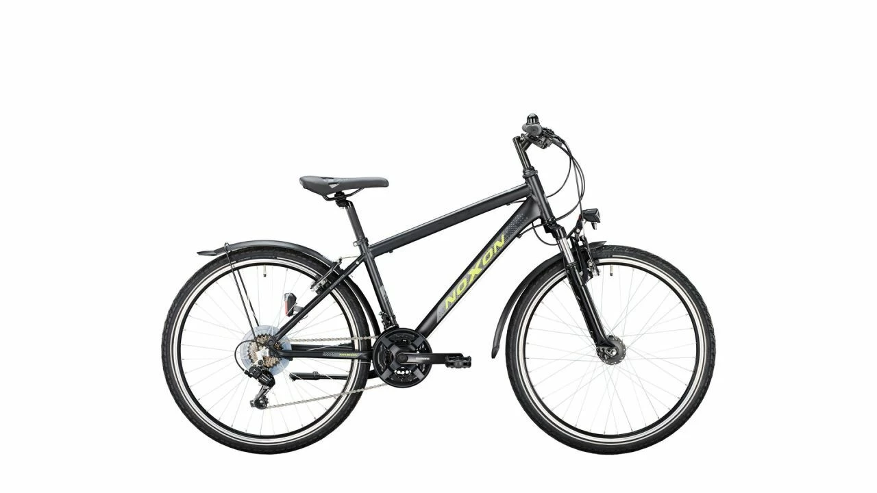 Bereit für wildes Heizen? Dann ab auf das NOXON Wild Heater FG ND. Der Nachwuchs kann das Jugend-MTB mit seinen 26''ern schnell auf Touren bringen, wenn mal wieder Nachbarschaftsrennen mit den anderen Kids anstehen. Dazu die sportliche Rahmenform und schon ergibt sich ein cooles Bike für die Kids.<br><br>Doch das Wild Heater FG ND kann nicht nur cool, sondern auch sicher: Etwa die praktische, Komplett-Ausstattung, die der Gesetzgeber vorschreibt mit LED-Scheinwerfer und Rücklicht inklusive Standlichtfunktion und Nabendynamo, alle Reflektoren, zwei zuverlässige V-Bremsen und eine Federgabel, die zusammen mit den 50 mm breiten Reifen gut dämpft.<br><br>Um dem sportlichen Stil weiterhin gerecht zu werden verzichtet man beim Wild Heater FG ND bewusst auf einen Gepäckträger, dieser lässt sich aber mit wenigen Handgriffen nachrüsten. Die praktischen Schutzbleche hingegen sind von vornherein dabei, können aber auf Wunsch ganz leicht demontiert werden. Geschaltet wird per Shimano 3×7-Gang Kettenschaltung.