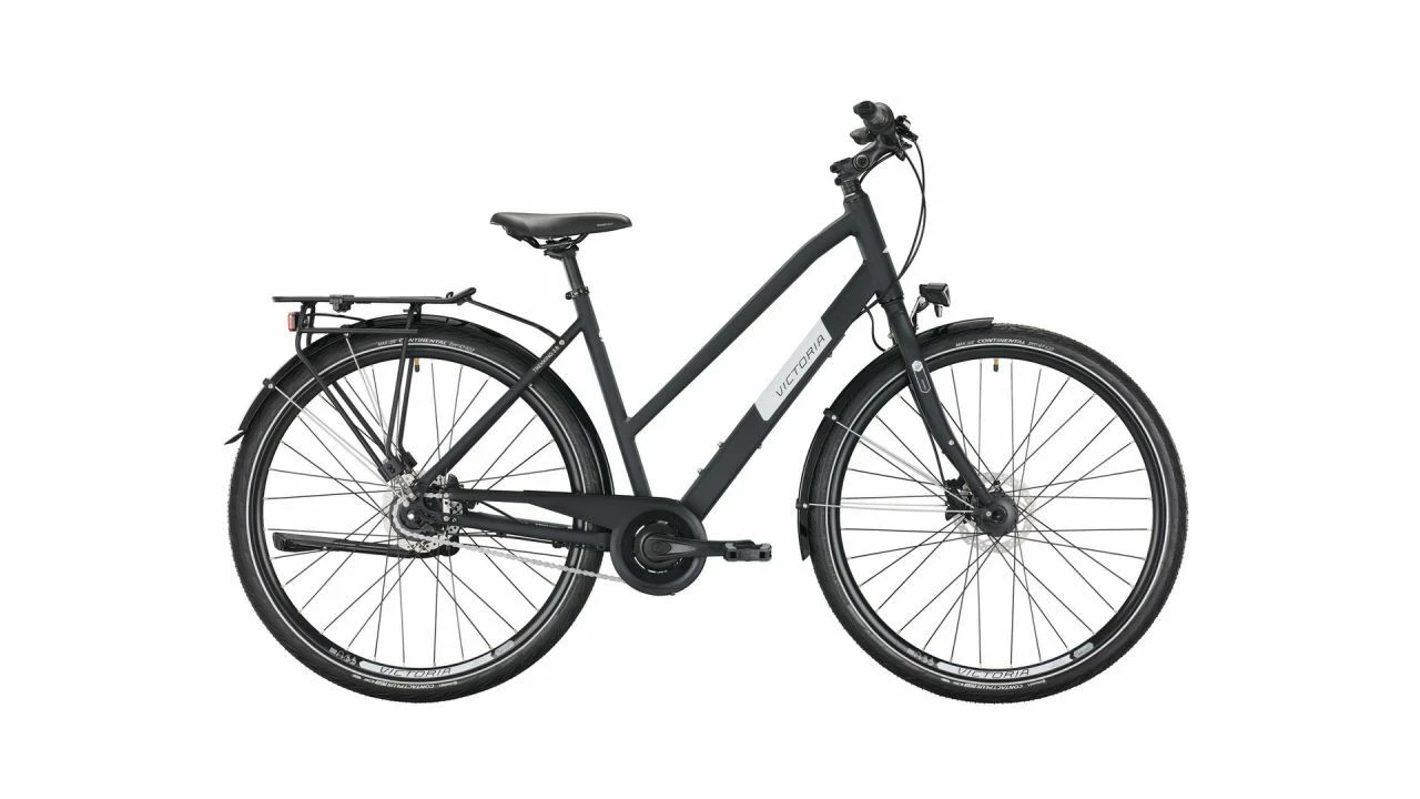 Frage: Was macht das VICTORIA Trekking 3.8 aus? Antwort: Seine komfortable Fahrweise sowie die durch und durch solide Ausstattung. Ob nun alltägliche Besorgungen, die Fahrt zur Arbeit oder die Feierabendrunde mit dem Bike erledigt werden – es geht alles, und zudem in frischem Design. Der neue Look in Kombination mit dem filigranen Marken-Schriftzug macht das Trekking 3.8 ausgesprochen salonfähig.<br><br>Mit Starrgabel steht das Trekking 3.8 für direkte Lenkmanöver und eine direkte Kraftübertragung sowie eine entspannte Sitzposition. Auch für hügeliges Terrain kann die Übersetzungsbandbreite von 300 Prozent der SHIMANO Nexus 8-Gang-Nabenschaltung (Leerlauf) reichen – sie hat ein reiches Repertoire sowohl für steile Anstiege als auch schnelle Abfahrten.<br><br>Die SCHWALBE Land Cruiser Reifen eignen sich gleichermaßen für Asphalt als auch Feldwege. Sie sorgen für komfortable Dämpfung und optimalen Grip, denn das Profil krallt sich in jeden losen Untergrund. Auf Asphalt laufen sie leise und ruhig. Dazu punktet der Reifen mit Pannenschutz und der Gepäckträger, der mit dem MIK System ausgestattet ist.<br><br>Optimale Bremsperformance bieten die hydraulischen Scheibenbremsen. Sie überzeugen nicht einmal in erster Linie durch ihre kraftvoll zupackende Art, nein – vielmehr ist es die Möglichkeit, sie fein dosieren zu können und das bei steter Leichtgängigkeit.<br><br>Mehr als zuverlässig ist auch die Lichtanlage aus Nabendynamo, dem LED-Rücklicht mit Standlicht und dem LED-Scheinwerfer. Mit 50 Lux weist er taghell den Weg, auch bei Nacht. Wartet man im Dunkeln an einer Kreuzung oder roten Ampel leuchtet das Standlicht eine Zeit lang weiter und erhöht so nochmals die Sicherheit im Straßenverkehr.