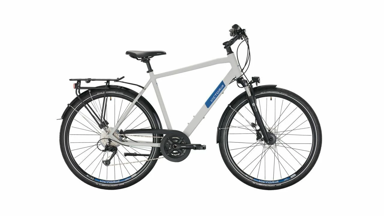 Das Trekking 4.7 von VICTORIA hat alles, was man für den Fahrrad-Alltag und auf Tour braucht. Mit 18 SHIMANO Acera Gängen hält es ein breites Portfolio sowohl für Stadtfahrten als auch auf Strecken mit knackigen Anstiegen vor. Das neue Design gibt dem City- und Trekkingrad eine moderne Optik.<br><br>Die 42 mm breiten SCHWALBE Reifen dämpfen gut, wenn es durch unwegsames Gelände geht, beißen sich aber auch fest in losen Untergrund. Die gefederte SUNTOUR Gabel unterstützt den Komfort-Gedanken. Für ebendiesen sorgen zudem die ergonomischen Tour Wing Griffe von CONTEC. Die Flügelform verhindert das Abknicken der Handgelenke und beugt Ermüdungserscheinungen vor.<br><br>Für die nötige Sicherheit sorgen die hydraulischen Scheibenbremsen, die sich stets präzise dosieren lassen, aber auch kräftig zupacken können, sollte es mal drauf ankommen. Geht es nach einer ausgiebigen Tour abends wieder heim leuchtet der taghelle 50 Lux Scheinwerfer den Weg sicher aus. Das Rücklicht überzeugt mit seiner Standlichtfunktion, wodurch die LEDs noch eine Zeitlang weiterleuchten, wenn man an einer dunklen Kreuzung zum Stehen kommt.