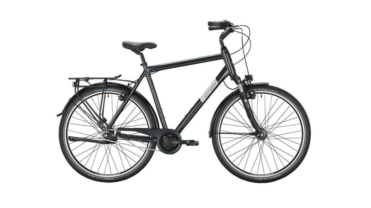 Für besonders schwere Lasten kann VICTORIAs Trekking 5.5 mit bis zu 170 kg beladen werden. Zum einen ist es daher für besonders große und schwere TourenfahrInnen geeignet oder aber um eine ganze Menge Reisegepäck mitzunehmen. Ein Anhänger zum Beladen mit Einkäufen kann hinter gespannt werden – auch das zählt zum zulässigen Gesamtgewicht. Technisch unverändert, dafür in neuem Glanz erstrahlt das Trekking 5.5: Die frische Optik mit dem reduzierten Marken-Schriftzug sorgt für ein aufgeräumtes und modernes Design.<br><br>Die bewährte SHIMANO Nexus Schaltung bietet mit ihren sieben Gängen eine solide Auswahl für jede Situation – besonders dann, wenn das Trekking 5.5 seinem Namen gerecht wird und es für die Tour über Land genutzt wird. Für hohen Komfort ist die gefederte Gabel von SUNTOUR da. Auf das Gewicht entsprechend ausgelegt ist die – im Vergleich zu den anderen Trekking-Modellen – härtere Feder.<br><br>Stark und präzise dosierbar zugleich ist die MAGURA HS11. Auf die hydraulische Felgenbremse ist stets Verlass, wenn es um Sicherheit geht. Der Marathon Plus ist der Unplattbar-Reifen aus dem Hause SCHWALBE. Er überzeugt vor Allem durch seinen hohen Pannenschutz und gleichzeitig leichtem Rollwiderstand. Die Breite von 47 mm führt den Komfort-Gedanken fort.<br><br>Mit 40 Lux leuchtet der CONTEC Scheinwerfer hell den Weg durch die Stadt oder auf dem Weg nach Hause. Kommt man an einer roten Ampel oder einer Kreuzung zum Halten, überzeugt vor Allem das Rücklicht mit Standlichtfunktion. Auch die Reflexstreifen an den Reifen erhöhen die Sichtbarkeit im Straßenverkehr.